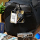 PERSONNALISEZ ces or sophistiqué élégant chic à la mode et bijoux en cristal noirs de fausse pierre de parties scintillantes scintillantes de motif de remous et girly, avec votre propre texte, nom ou monogramme, initiales.