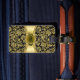 Elégant noir et or tonalités métallique brillant avec motif damas fleuris. monogramme personnalisé et optionnel. Ce n'est pas un métal mais une image qui a l'air métallique.