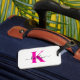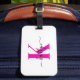 Cette étiquette simple et élégante de bagage blanc avec votre prénom dans une police de script tendance en noir tapé sur votre première initiale dans une police casquette moderne en rose chaud d'un côté et une diapositive dans la carte pour votre nom, adresse et numéro de téléphone de l'autre serait fabuleux sur vos valises. C'est design, tendance et pourtant très classique.