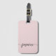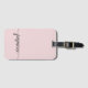 Étiquette de bagage personnalisée avec monogramme rose blush minimaliste et féminin. Ce design présente votre prénom dans un joli style de lettrage manuscrit avec une typographie calligraphique à queue en arabesque sur fond rose poudré ou rose blush pastel clair. Facile à personnaliser. Cadeau féminin élégant pour un mariage, une douche de mariée, un anniversaire de 16 ans, une remise de diplôme, et pour quiconque aime le style glamour.