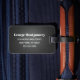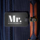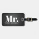 Voyagez dans le style avec cette étiquette masculine de bagage pour des mariés et des nouveaux mariés. Caractéristiques de conception ce un arrière - plan de cuir de noir de faux avec "M." et de votre nom de famille dans une typographie gris-clair moderne de manuscrit. Le dos de l'étiquette de sac a vos détails de contact qu'il faut que vous personnalisiez dans gris-clair sur un arrière - plan noir de cuir de faux. Conçu par l'artiste Coffey ©Susan.