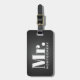 Étiquette À Bagage Nom de M. Black Leather Script Monogrammed