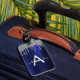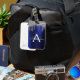 Étiquette À Bagage Nom de monogramme de paillettes bleues de marine a
