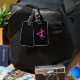 Étiquette À Bagage Nom de monogramme féminin écriture noir rose chaud