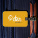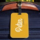 Étiquette À Bagage Nom de script en gras Mustard jaune moderne simple
