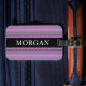 Personnalisez votre nom en blanc sur ce design noir, gris rayé et lavande.