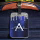 Étiquette de bagage avec monogramme en métal brossé à paillettes métallisées argent et bleu marine. C'est le cadeau idéal pour un anniversaire des 16 ans, un mariage, une douche de mariée, un anniversaire de mariage, une baby shower ou une soirée d'enterrement de vie de jeune fille pour quelqu'un qui aime le luxe clinquant et les styles chics.