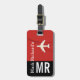 Étiquette À Bagage Nom et initiales du voyageur moderne rouge élégant