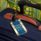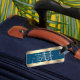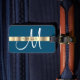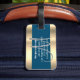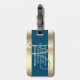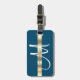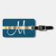 Étiquette À Bagage Nom & Grand Monogramme, Blanc Bleu Or Gris