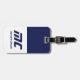 Étiquette À Bagage Nom Monogrammé Moderne en Bleu Simple et Gras