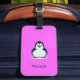 Étiquette À Bagage Nom personnalisé pingouin mignon sur rose