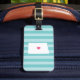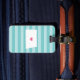 Retrouvez votre état natal du Dakota du Nord avec cette mignonne étiquette de bagages turquoise et rose avec une carte silhouette de l'état du Dakota du Nord avec un coeur rose à l'intérieur, superposée sur un arrière - plan branché aqua rayé preppy. Ce design mignon aux couleurs tendance fait un grand pot de Noël pour les femmes, les ados et les filles, que ce soit dans le Dakota du Nord, hors de l'état pour l'université ou se sentir mal à la maison ou nostalgique pour leur état d'origine. Personnalisez l'envers avec vos coordonnées en blanc sur le bleu turquoise correspondant.
