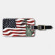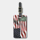 Cette étiquette élégante de bagage comporte un drapeau de ondulation des Etats-Unis à l'arrière-plan et la statue de la liberté dans l'avant. Sur le dos vous pouvez ajouter votre adresse.