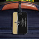 Ces étiquettes noires de bagage de Silver Fleur de Lis d'or vous aideront à maintenir votre bagage dans le style. Les étiquettes de bagage comportent un noir de deux tons et un arrière - plan d'or divisés par une rayure argentée décorée d'un symbole de Fleur balayé par imitation de lis en métal. Le dos comporte le même symbole sur un arrière - plan balayé par imitation en métal. Personnalisez avec votre nom sur l'avant et information de contact sur le dos.