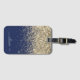 Étiquette À Bagage Or Nom Bleu Marin Féminin Paillettes Monogramme No