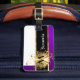 Personnalisez facilement ces motif moderne coloré par violette pourpre simple élégante chic et arrière - plan blanc et conception décorée d'un monogramme baroque fleurie de cercle de remous de sembler en métal d'or sur une rayure noire en ajoutant vos initiales de monogramme au modèle pour faire un cadeau personnalisé par coutume moderne unique. VEUILLEZ NOTER l'or n'est pas métallique.