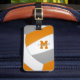 Cette étiquette de bagage à thème volleyball convient à une fille ou un garçon et présente l'image réaliste d'un volleyball abstraitement surdimensionné qui a des panneaux orange, gris et blanc - personnalisez avec le nom du joueur et le monogramme sur le devant, l'adresse et le numéro de téléphone sur le dos - par katz_d_zynes
