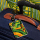 ÉTIQUETTE À BAGAGE ORANGE VERT JAUNE MOTIF IRLANDAIS ABSTRAIT
