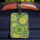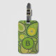 Bright green ornate paisley pattern monogrammed luggage tag.