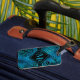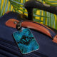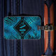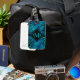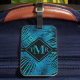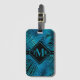 Tropical turquoise frondes de palmier sur le noir, ces étiquettes de bagages présentent votre monogramme en lettres chic turquoise sur le noir sur l'avant et une fente de carte sur le dos pour une identification facile. Créez-vous pour vous-même ou offrez-en un cadeau.