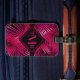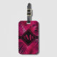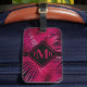 Tropical frondes de palmier rose chaud sur le noir, ces étiquettes de bagages comprennent votre monogramme en lettres chic sur l'avant et une fente de carte sur le dos pour une identification facile. Créez-vous pour vous-même ou offrez-en un cadeau.