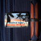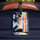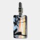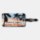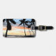 Étiquette d'identification tropicale de bagages de voyage avec le secteur de modèle des textes pour le nom et le numéro de téléphone de contact. La conception d'arrière - plan est un littoral avec des palmiers décrits par un coucher du soleil vif.