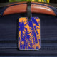 Palm Tree Design avec Monogramme. Bleu et orange. Motif de feuille, palmiers tropicaux.