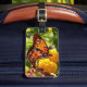 Étiquette À Bagage Papillon de monarque sur des fleurs sauvages,