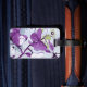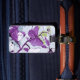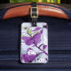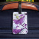 Conception originale réalisée avec une illustration vintage avec des papillons violets assis sur une branche de feuilles et un arrière - plan de motifs floraux bleu clair.