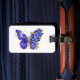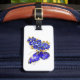Bijoux, bleu, saphir, papillon aux fleurs pétillantes avec aile décorée de bleu, fleurs précieuses avec feuilles d'or sur arrière - plan blanc.