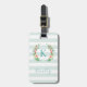 Élégante étiquette à bagages imprimée sur mesure. Ce design branché et amusant présente un arrière - plan rayé bleu et blanc à la menthe et une couronne fleurie colorée. Personnalisez-le avec votre nom et votre monogramme ou tout autre texte personnalisé. Ajoutez vos coordonnées sur le côté arrière en coque vos bagages sont perdus pendant le voyage. Utilisez les outils de conception pour choisir les couleurs arrière - plans, modifier les polices de texte et les couleurs et télécharger vos propres photos pour créer une étiquette de bagage monogrammée unique.