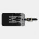 Voyagez dans le style avec cette étiquette de parties scintillant personnalisée et sac à bagages glam Le design élégant comprend une bordure au sommet de la parties scintillant à goutte d'argent faux avec des étincelles. Au centre se trouve votre initiale monogramme en gris avec votre nom dans un script moderne en gris pâle écrit à la main sur un arrière - plan de noir. Le dos de la étiquette de bagage a votre nom et adresse à personnaliser. Conçu pour vous par des Tee - shirts extrêmes !