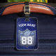 Cette élégante étiquette de bagage à thème sportif présente une parties scintillant en argent glacé et en faux bleu profond. Le design classique de la crête comprend un football bleu argenté, des étoiles de parties scintillant argentée et de l'espace pour votre nom et numéro. Élégant et brillant—parfait pour les amateurs de football avec style.