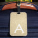 Parties scintillant d'étincelle d'or Nom du monogramme et numéro de bagage initial. Cette étiquette de sac est parfaite pour le retour à l'école, le travail ou le voyage.