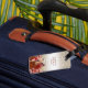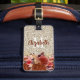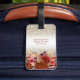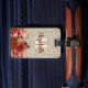 Cette étiquette à bagages offre un design brillant. Il présente un monogramme, de l'or rose et des fleurs de pêche sur un arrière - plan parties scintillant couleur faux champagne. Personnalisez l'arrière avec vos coordonnées.