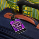 La fausse parties scintillant violette est girly, élégant et chic. Le tatouage au crâne de sucre est en hommage à Dia de los Muertos. Voyagez avec style avec une étiquette monogrammée. Le monogramme gras sur le devant et les coordonnées sur le dos sont faciles à mettre à jour.