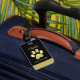 Étiquette À Bagage Paw chien brillant or sur arrière - plan noir