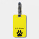 Pawprint de chien de dessin animé en noir. Arrière - plan jaune vif. Balises personnalisées avec nom personnalisé. Idée cadeau pour les amoureux de les chiens.