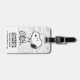 Voyagez dans le style avec cette étiquette de bagage unique avec Snoopy contre un arrière - plan de bande dessinée Peanuts noir et blanc. Parfait pour les fans de cacahuètes, cette étiquette ajoute une touche ludique et nostalgique à vos accessoires de voyage tout en vous aidant à identifier facilement vos sacs.