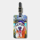 Étiquette À Bagage Peinture nerd en verre de golden retriever vibrant