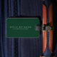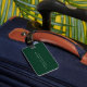 Une étiquette verte foncée simple et basique avec des champs pour le nom, la profession et l'adresse... pour identifier facilement vos bagages de travail à l'aéroport
