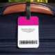 Personnalisez facilement cette étiquette de bagage personnalisée avec photo, code de la barre d'analyse et logo de l'entreprise. Un design d'entreprise simple dans les couleurs rose néon entièrement personnalisable en tailles avant et arrière, sans-serif polices de base et moderne et un look professionnel et clair. Idéal pour les employés Gadgets de voyage d'affaires, Accessoires de voyage pour professionnels, étiquettes d'ID bagage de sécurité de voyage de l'entreprise, gadgets de patron pour les voyages d'affaires. L'étiquette de bagage est disponible en impression recto verso, ou en face simple avec emplacement de carte. Pas de commande minimum.