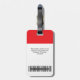 Personnalisez facilement cette étiquette de bagage personnalisée avec photo, code de la barre d'analyse et logo de l'entreprise. Un design d'entreprise simple en rouge et blanc entièrement personnalisable en tailles avant et arrière, sans-serif polices de base et moderne et un look professionnel et clair. Idéal pour les employés Gadgets de voyage d'affaires, Accessoires de voyage pour professionnels, étiquettes d'ID bagage de sécurité de voyage de l'entreprise, gadgets de patron pour les voyages d'affaires. L'étiquette de bagage est disponible en impression recto verso, ou en face simple avec emplacement de carte. Pas de commande minimum.
