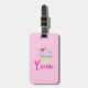 Balise bagage personnalisée avec un nom et une adresse. Conçu avec une illustration d'un cupcake délicieux avec des tourbillons roses et une baie avec des feuilles nichés dans le gel. "Yum" écrit en rose chaud avec une police tendance fantaisie. Placez-vous sur un arrière - plan rose pâle.