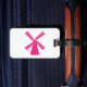 These luggage tags display a bright pink windmill graphic that makes your bags easy to spot while adding a fresh, modern touch to your travel gear. The bold minimalist artwork stands out instantly on suitcases, backpacks, and carry-ons. Durable and practical, this tag combines function with creative style, perfect for frequent travelers or anyone wanting a distinctive travel accessory.
