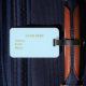 Étiquette À Bagage Plumes et calligraphie Peacock sur bleu clair
