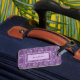 Marque de bagage personnalisée, jolie et élégante, à motif floral lilas décoratif et à arrière - plan violet luxuriant.