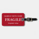 Balise bagage avec Fragile, Handle avec soin, Merci. Texte blanc sur un arrière - plan rouge foncé. Personnalisable . Personnalisez avec votre nom et vos informations d'adresse en utilisant les modèles faciles. La couleur de police, le style de police et la taille de police sont personnalisables.