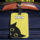 Étiquette À Bagage Point de polka curieux de jaune de chat noir