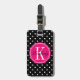 Étiquette À Bagage Point de polka noir avec le monogramme rose